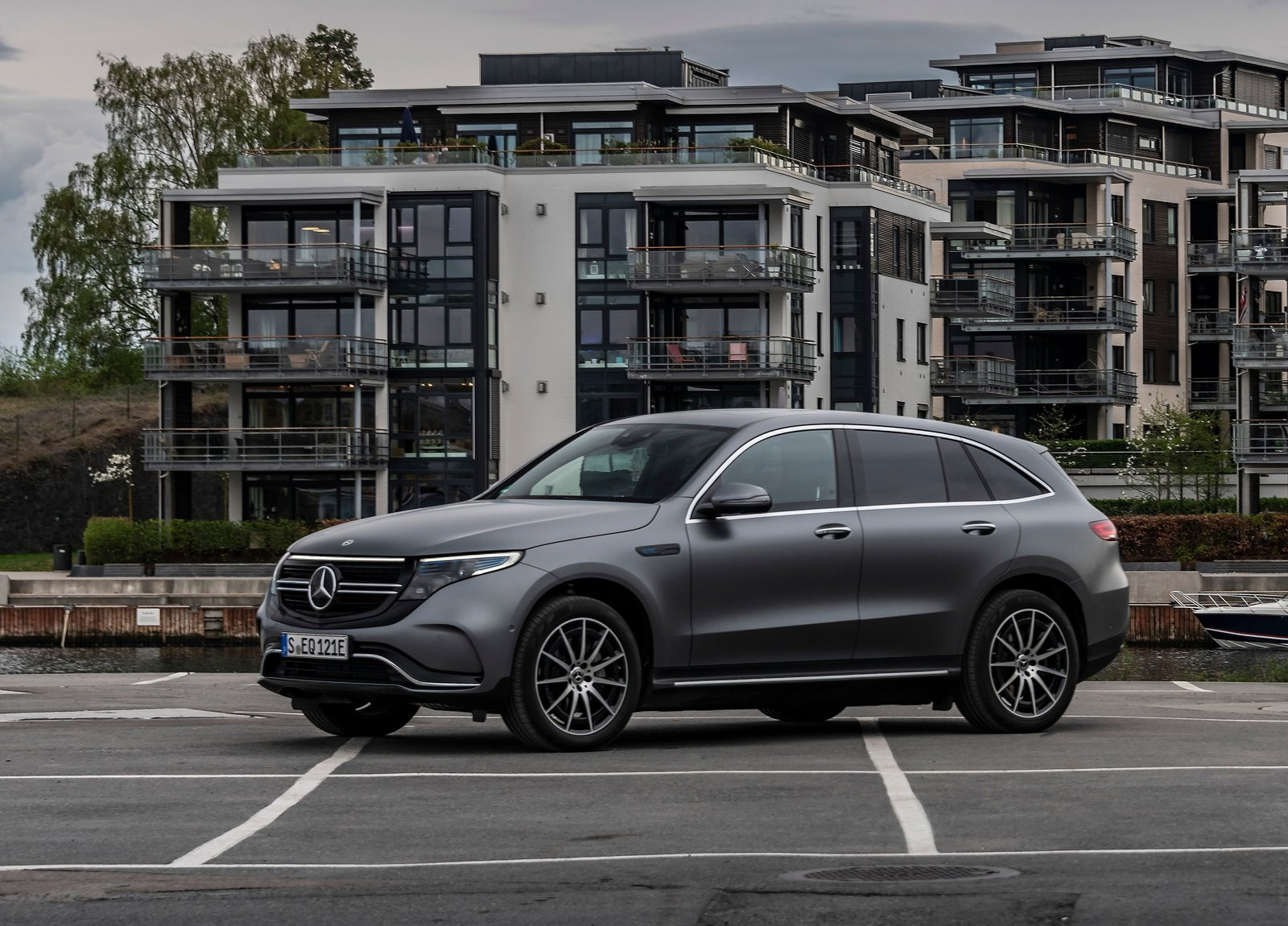 Mercedes EQC 400 4MATIC. Doua motoare electrice cu 408 cai putere pe ambele punti si baterie de 80 kWh. Autonomie maxima de 416 kilometri. Pret de pornire: 76.250 euro.