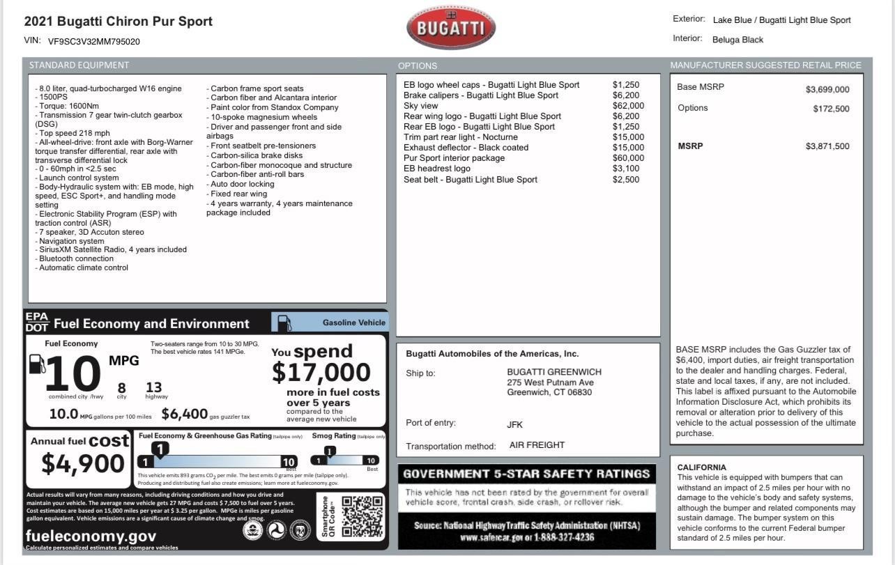 Bugatti Chiron Pur Sport de vanzare