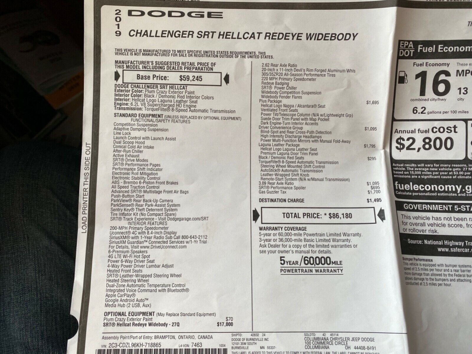 Dodge Challenger Hellcat Redeye de vanzare