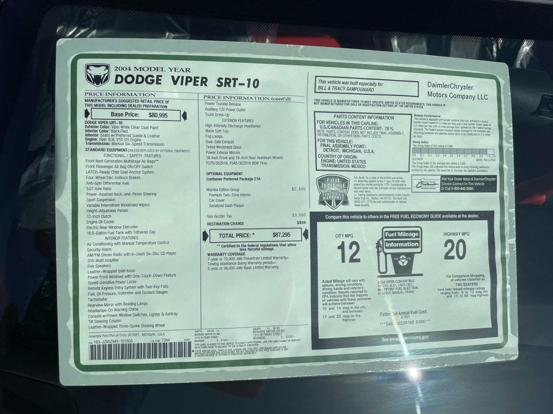 A cumparat-o in urma cu 19 ani, dar nu a condus-o niciodata. Acum o vinde cu tot cu folia de protectie de pe scaune si volan