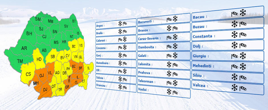 Atentie, soferi! DE ASTAZI vine zapada! Cod galben si portocaliu de ninsori in aproape tara